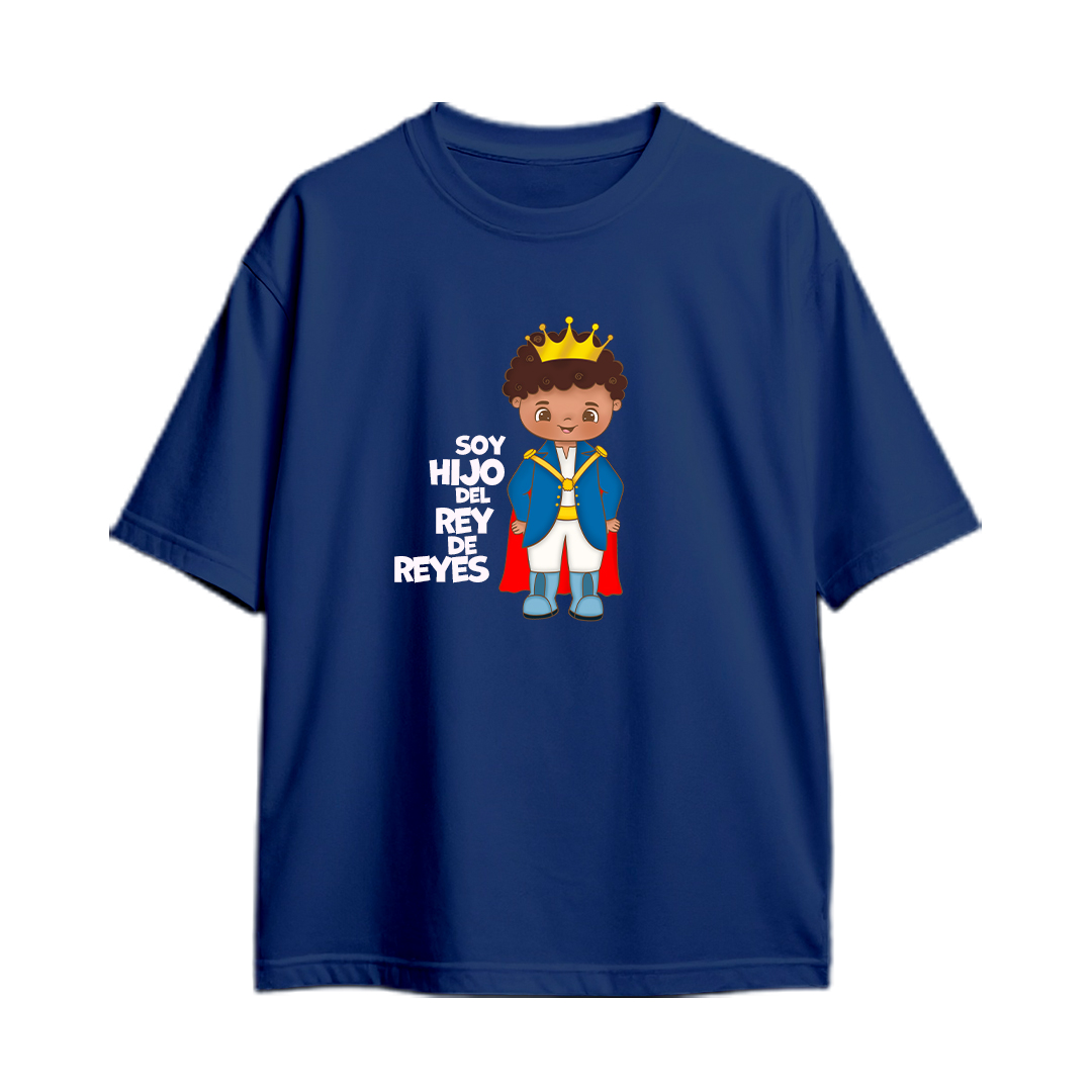 “Soy hijo del Rey de reyes”, resaltando identidad, fe y alegría en Dios. Un diseño infantil y encantador que recuerda el privilegio de pertenecer al Rey celestial.